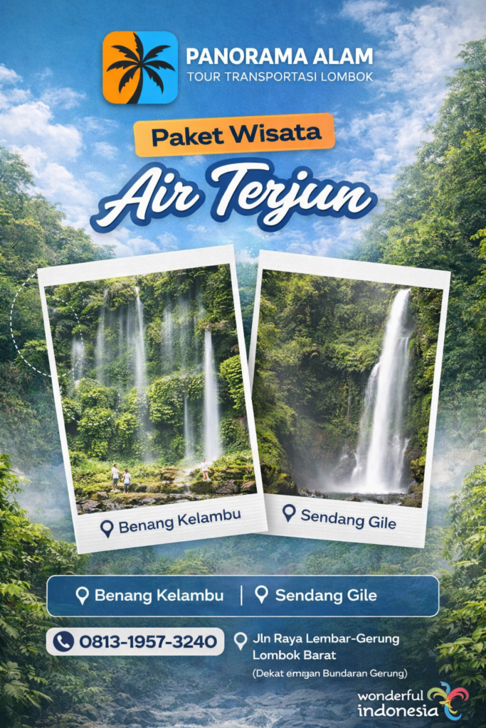 Nikmati keindahan air terjun alami di Pulau Lombok dengan suasana hutan yang sejuk dan pemandangan yang menenangkan. Paket wisata ini mengajak Anda mengunjungi air terjun populer seperti Benang Kelambu dan Sendang Gile dalam perjalanan satu hari yang nyaman dan menyenangkan.